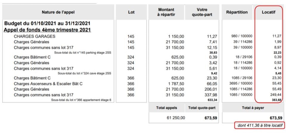Le montant des charges locatives récupérables souvent est précisé dans les appels de fonds et le décompte annuel des charges envoyés par le syndic de la copropriété :